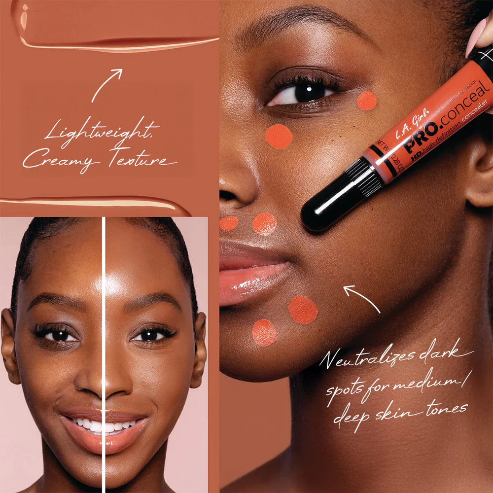 Orange Corrector: Neutralizes dark spots for medium/deep skin tones.